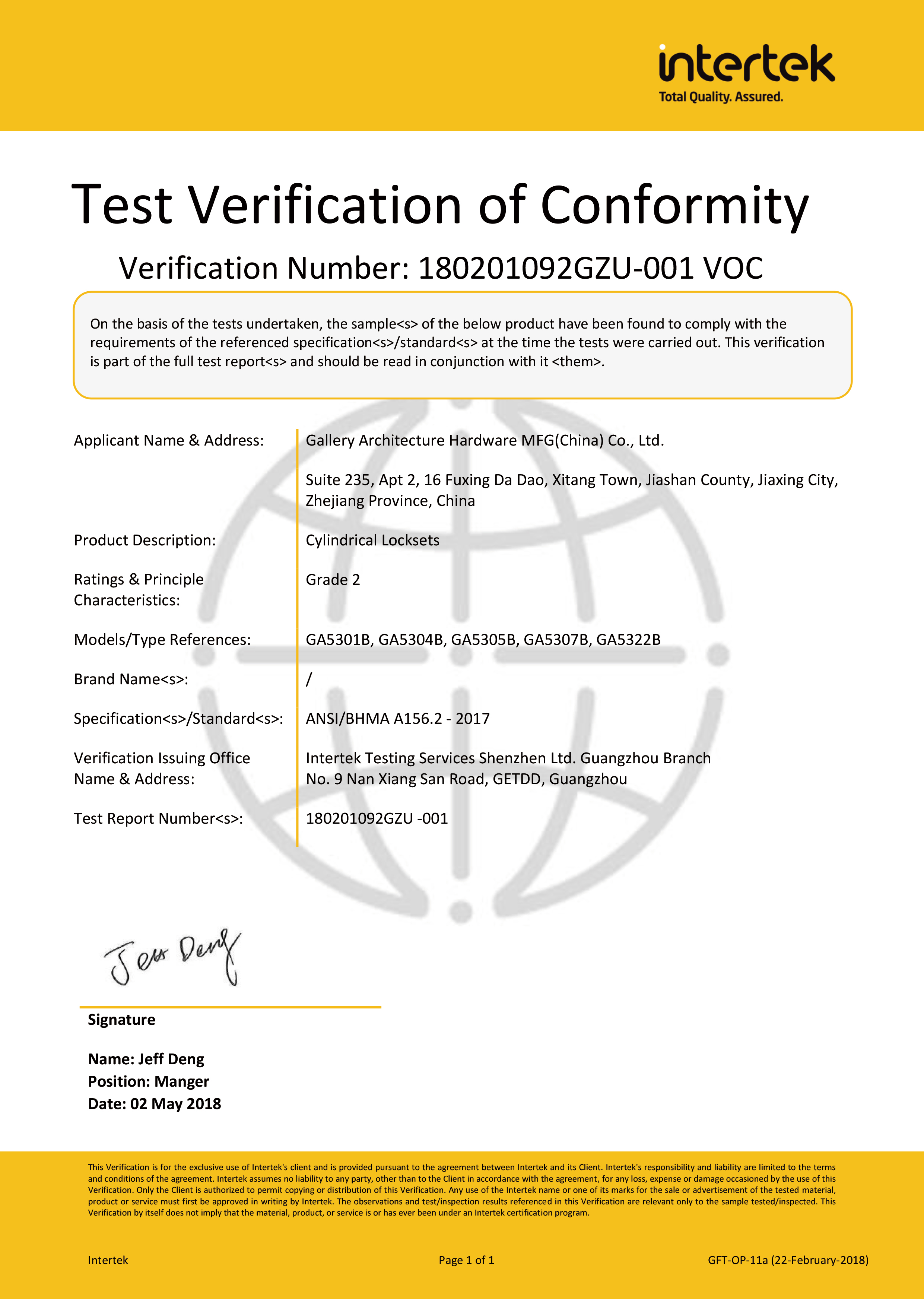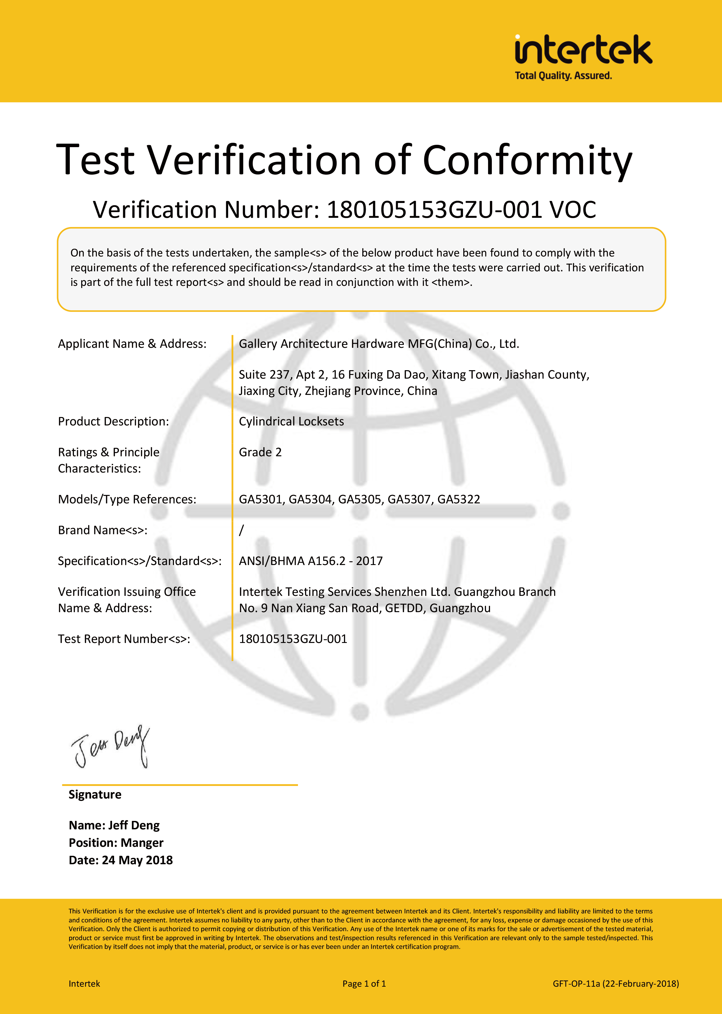 浙江堅(jiān)迪五金制造有限公司始建于 1995 年。自 2003 開始,公司致力于高標(biāo)準(zhǔn)商業(yè)鎖的研發(fā)工作,并于 2006 及 2007 年,8700 插芯鎖系列獲得美國(guó)國(guó)家標(biāo)準(zhǔn) ANSI A 156.13-2005 一級(jí)、ANSI A 156.2-2003 二級(jí)和美國(guó) UL 10C3 小時(shí)防火測(cè)試認(rèn)證。自 1998 年以來,公司不斷提升產(chǎn)品和客戶服務(wù)品質(zhì),并獲得了 ISO 9001 的認(rèn)證。